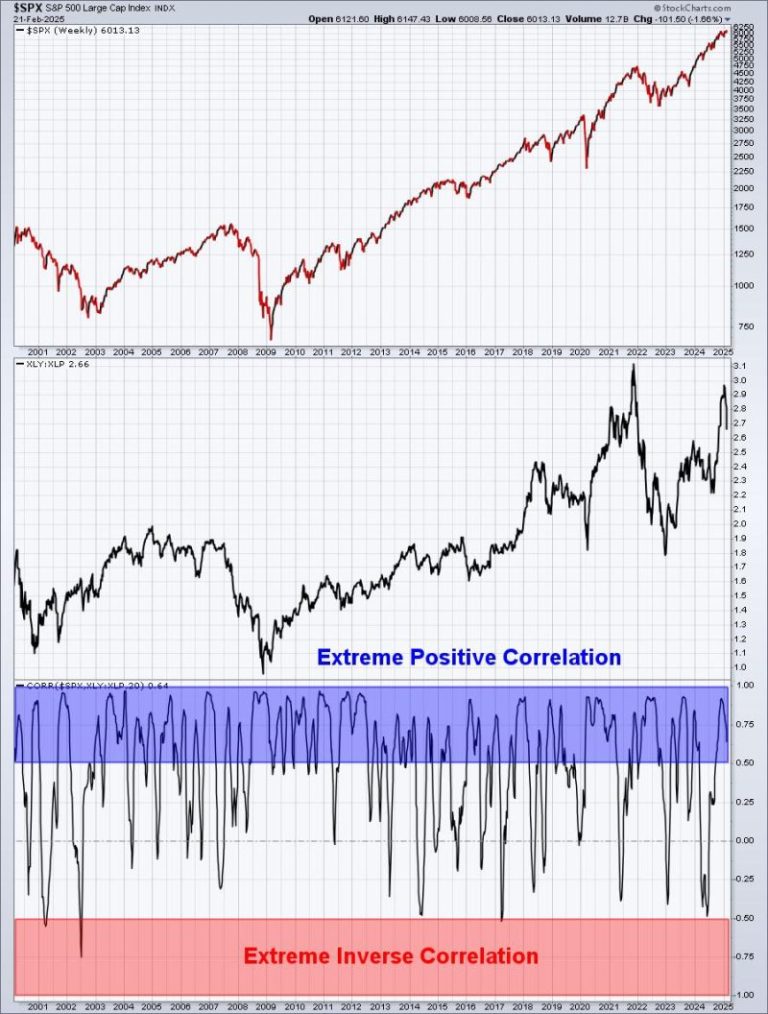 Let me start by reminding everyone that I believe the most important relationship in the stock market is how consumer discretionary stocks (XLY) perform relative to consumer staples stocks (XLP). This ratio (XLY:XLP) has a VERY strong positive correlation with the S&P 500. In other words, when the S&P 500 advances, a corresponding rise in the XLY:XLP ratio is to be expected. When it doesn’t rise to corroborate the benchmark’s rally, it typically leads to lack of S&P 500 follow through.